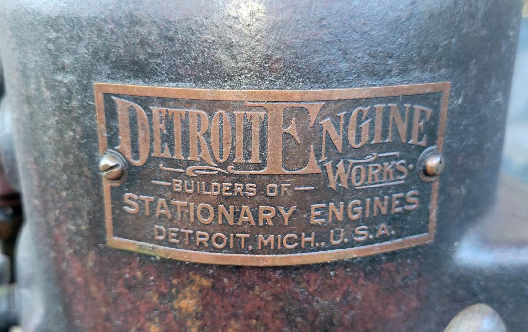 Detroit Stationary Farm engine with a London Detroit Engine Works tag. This style of engine may have been manufactured by the Detroit Motor Car Supply Company branch and then retagged. Previous owner: Russ Hall from the United Kingdom. New owner: Michael Leath Whoom from the United Kingdom.