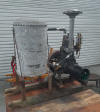 This engine has all it's original equipment: Cooling tank with top cover, gas tank and stand, muffler and name tag. Notice the optional pulley attachment for the flywheel side of the engine in the last photo setting on the skid. |